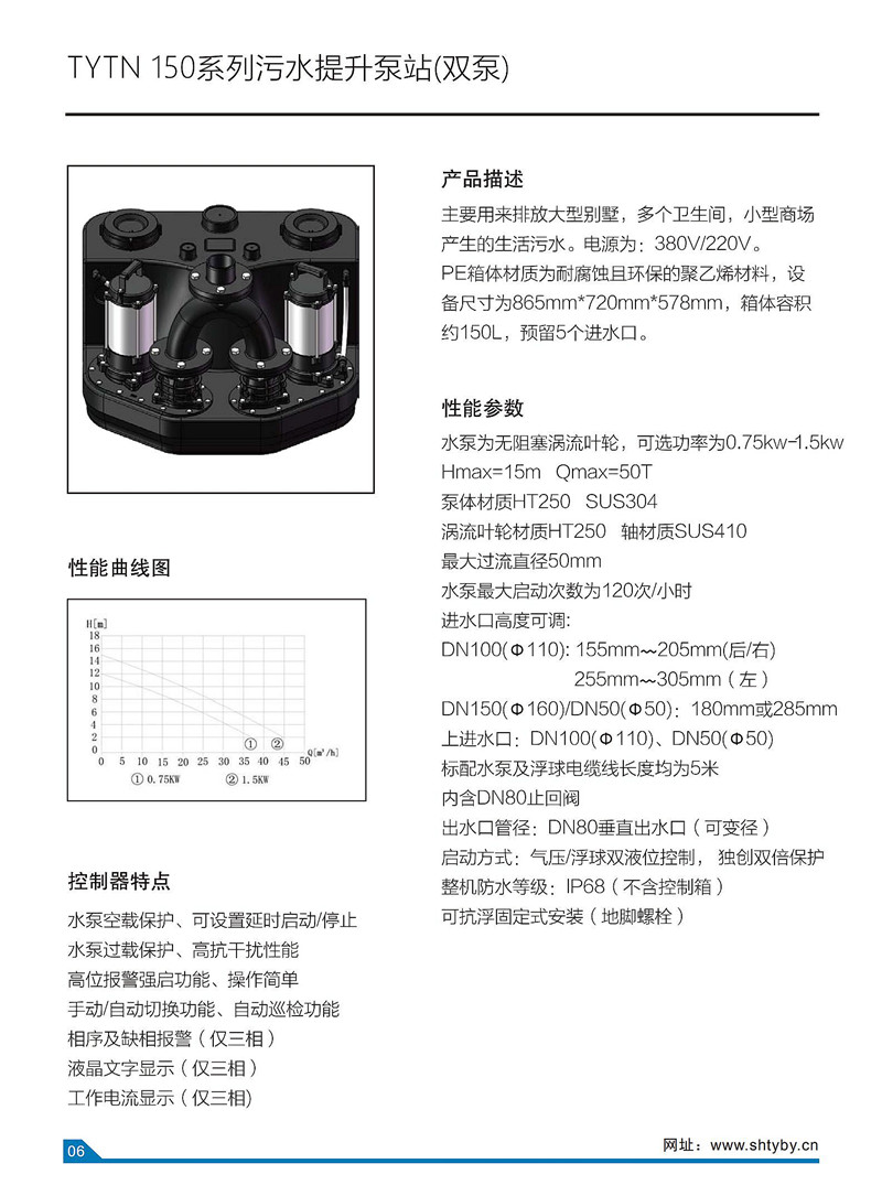 TYTN150L雙泵進(jìn)口電機(jī)污水提升器