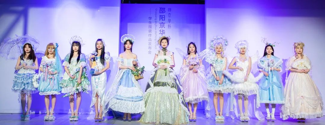 接下來是最新學生作品的展示。各系列的服裝作品,都是京華在校學生自己設計、自己制作而成的。