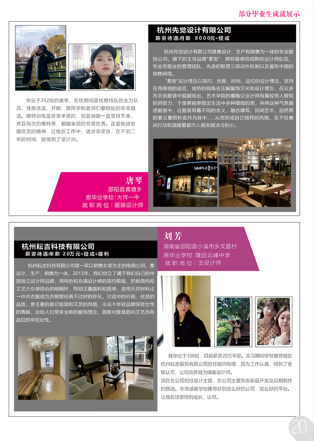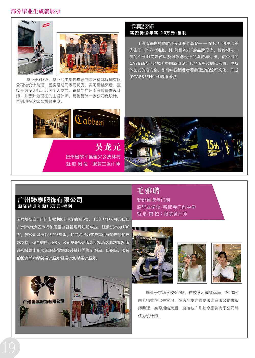 學生畢業后主要從事如下專業對口的工作:服裝設計助理、服裝設計師、制版師、制師助理、樣衣師、服裝陳列師、服裝銷售、網紅主播、時尚買手、形象設計、淘寶美工等。