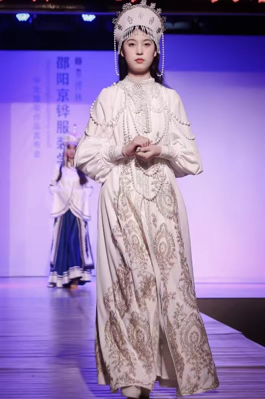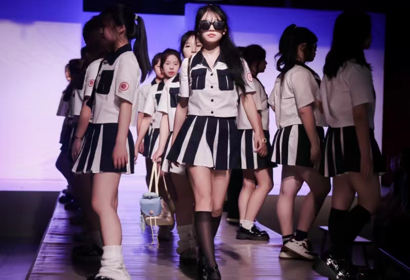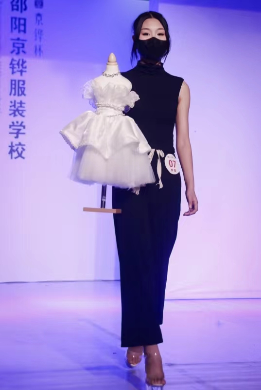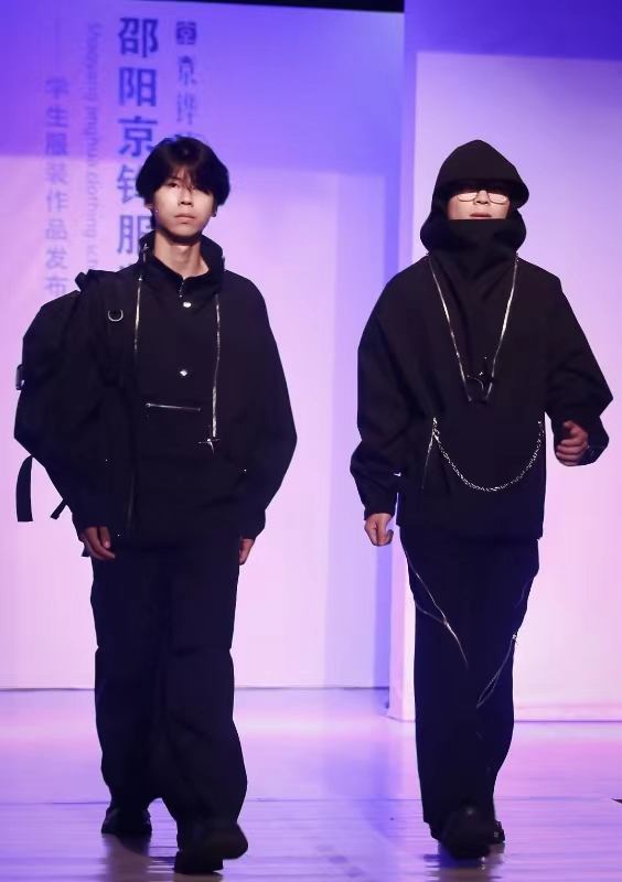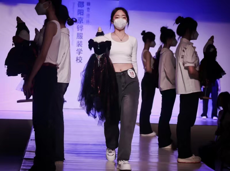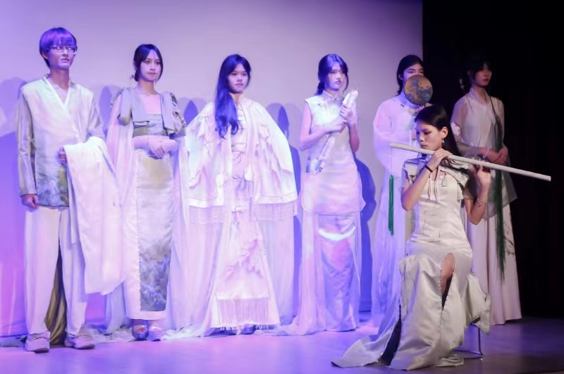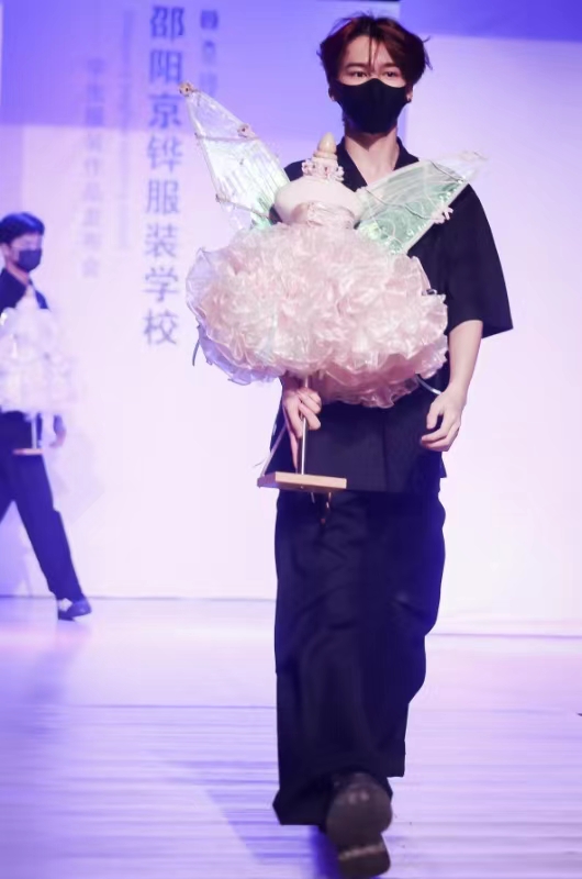 同學們手持人臺展示華美服飾,或者身著各具特色的時裝,款步走來,仿佛是從夢想畫卷中走出的精靈。
