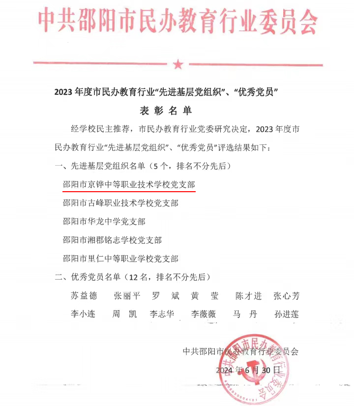 榮耀與責任:熱烈祝賀京鏵學校榮獲市“先進基層黨組織”稱號
