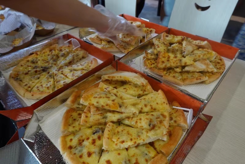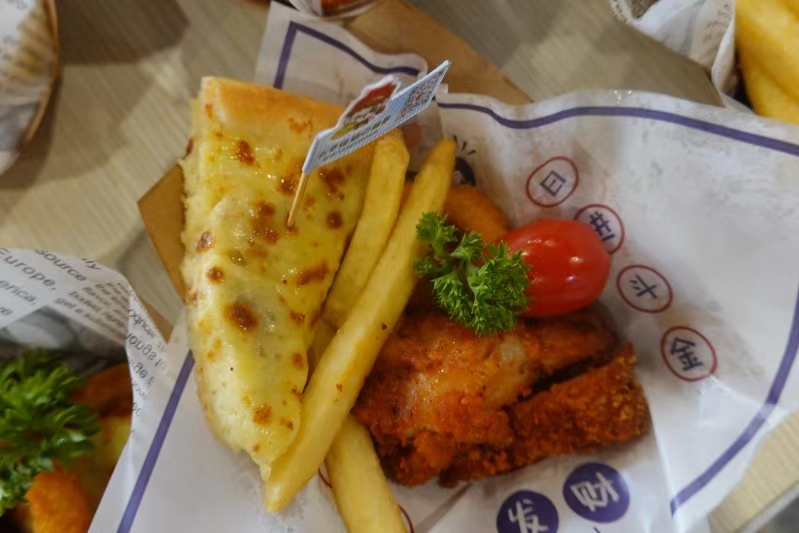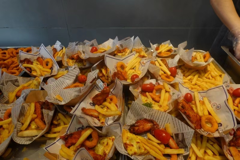 ? ? ? 首先映入眼簾的是那色澤誘人的小龍蝦,紅彤彤的外殼包裹著鮮嫩多汁的蝦肉,散發著讓人垂涎欲滴的香氣。一旁的 pizza 更是獨具魅力,豐富的餡料搭配著酥脆的餅底,每一口都是滿滿的滿足感。還有那金黃酥脆的炸雞,外酥里嫩,咬上一口,鮮嫩的雞肉在口中散發出誘人的香味。薯條則是香脆可口,一根根金黃的薯條仿佛在向同學們招手。
