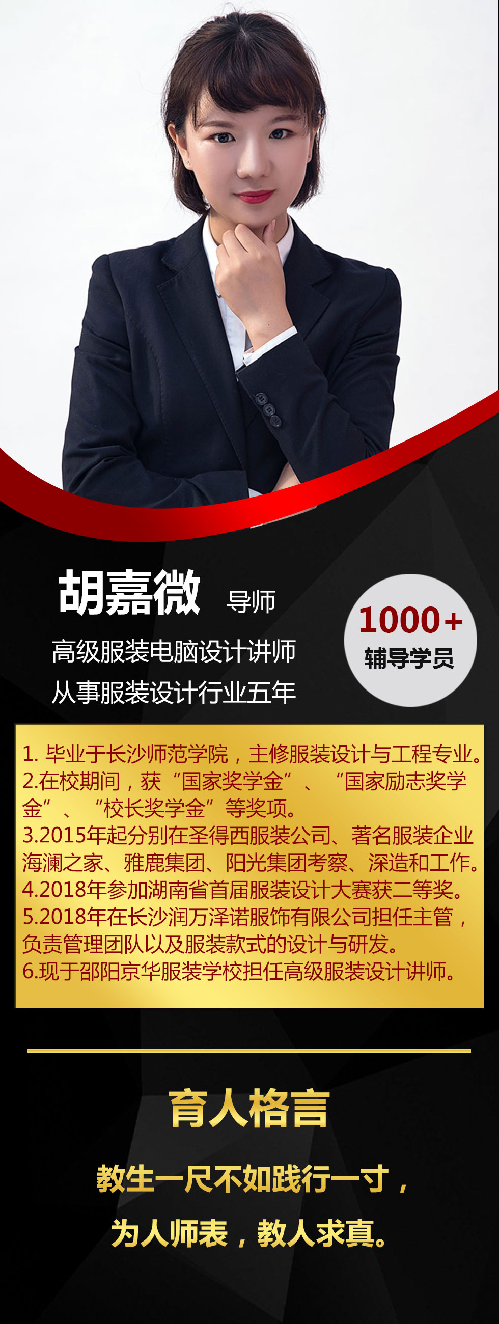育人格言:嚴于己,而后勤于學生。